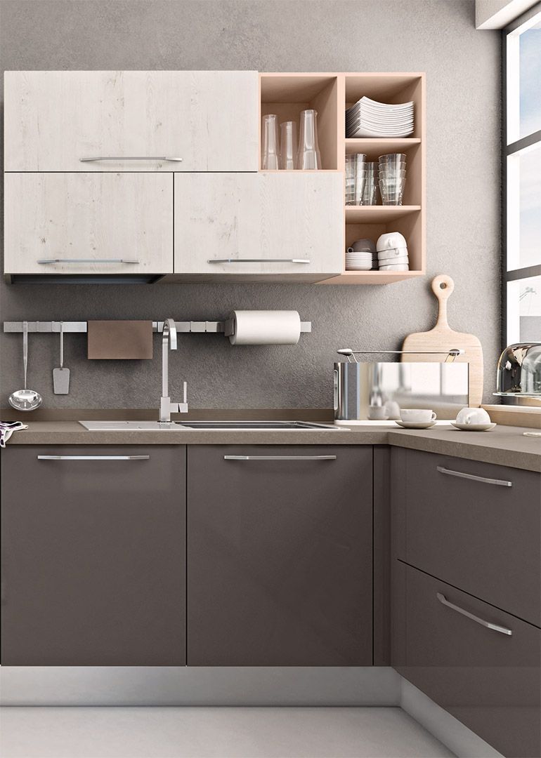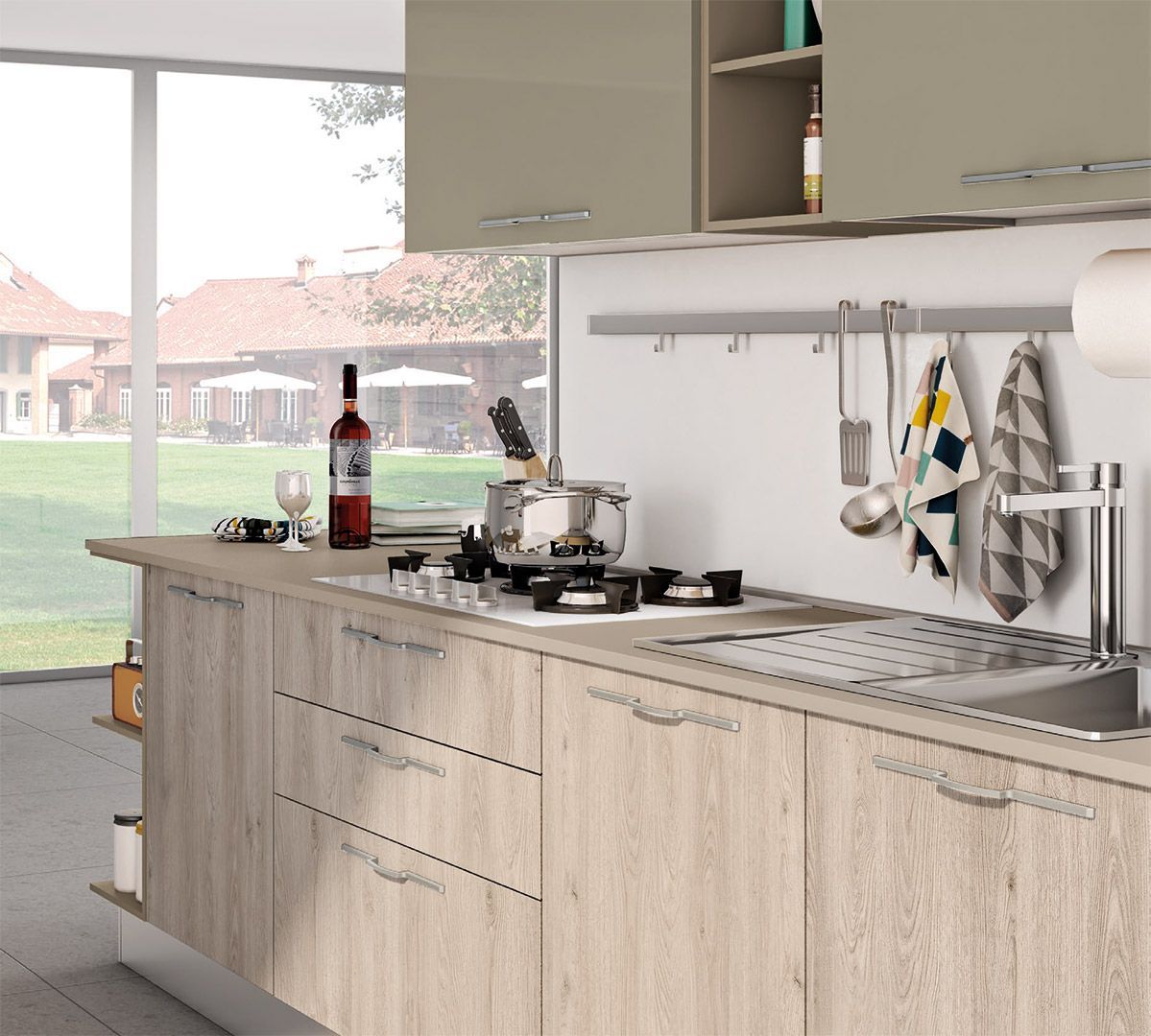 Cucina di design dal fascino vintage che ti catturerà con la sua personalità senza tempo. Le forme, i materiali e i colori si ispirano all'estetica postindustriale. Disponibile con sistema a gola o con maniglie, per personalizzare lo spazio cucina secondo i tuoi gusti.